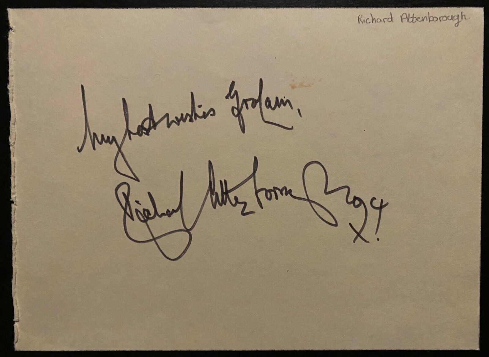 - Autograph of English actor, filmmaker, and entrepreneur Richard Attenborough carefully removed from an autograph album, authenticated by RR Auctions