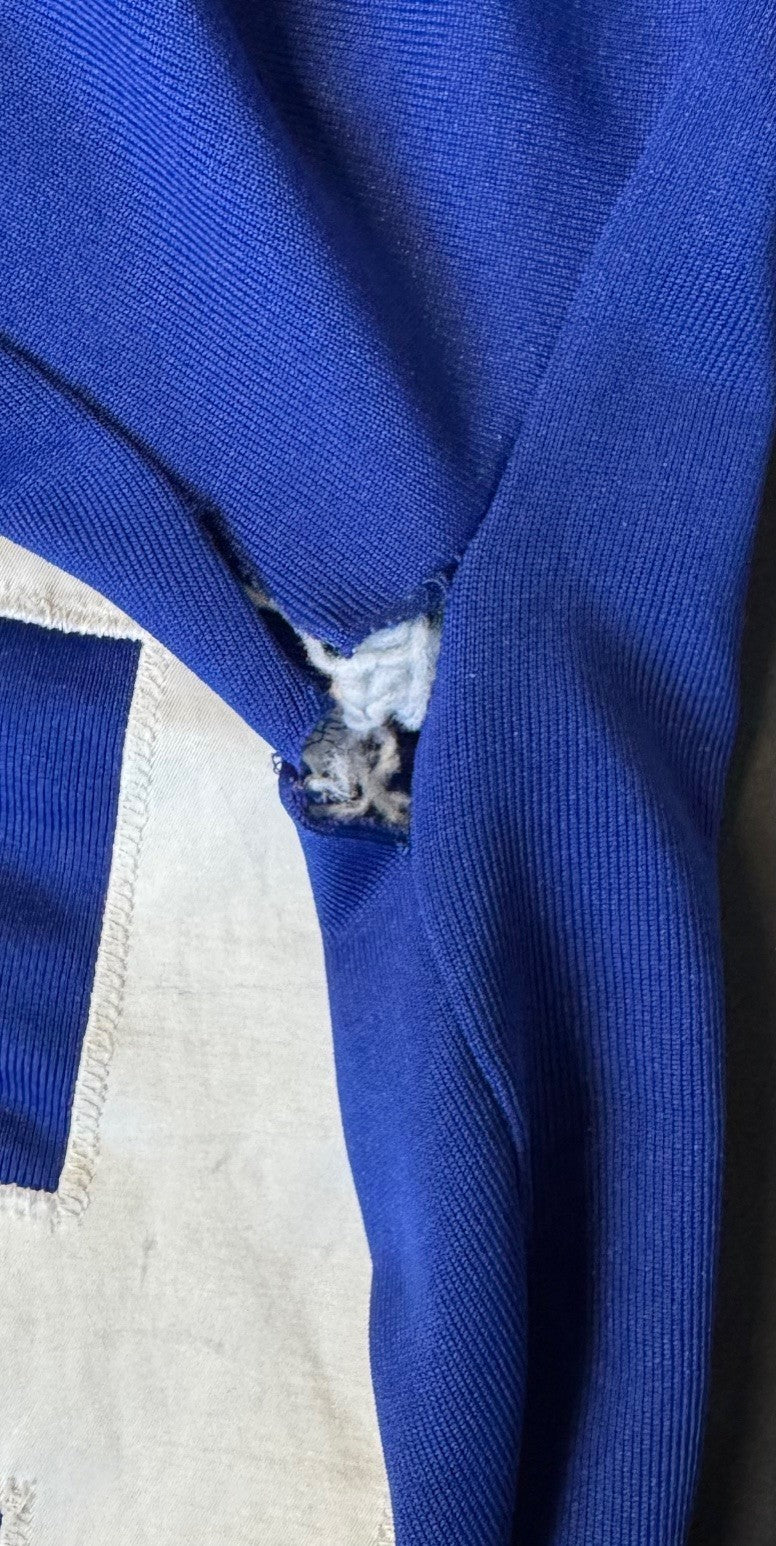- Excellent condition; some seem splitting underneath right armpit. Minor thread run underneath front logo patch